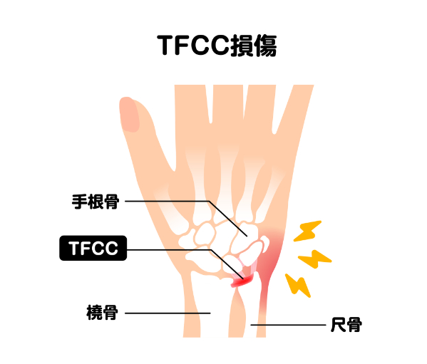 TFCC損傷とは、手首の小指側にある「三角線維軟骨複合体(TFCC)」という組織が傷ついた状態を指します。手首の小指側の痛みが代表的な症状で、手をひねる動作や、ドアノブを回す・重い物を持つなどの動作で痛みを感じやすくなります。近年では、18~30代の若い世代にもTFCC損傷が増えていることが報告されています。 スポーツによる手首への負荷だけでなく、長時間のスマートフォン操作やPC作業など、手首を酷使する生活習慣が影響していると考えられます。さらに、加齢による手首の組織の変性(老化)によっても発症リスクが高まります。